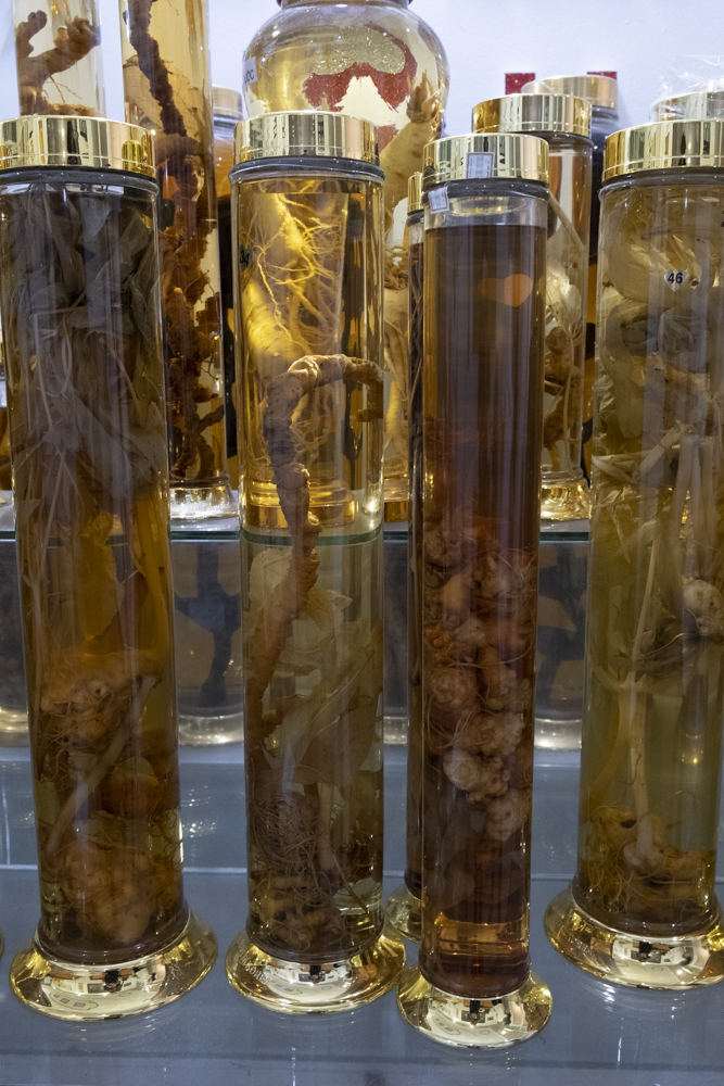 • Cho củ sâm vào bình thuỷ tinh đã chuẩn bị, từ từ đổ sâm cho ngập bình sau đó đậy kín nắp lại.