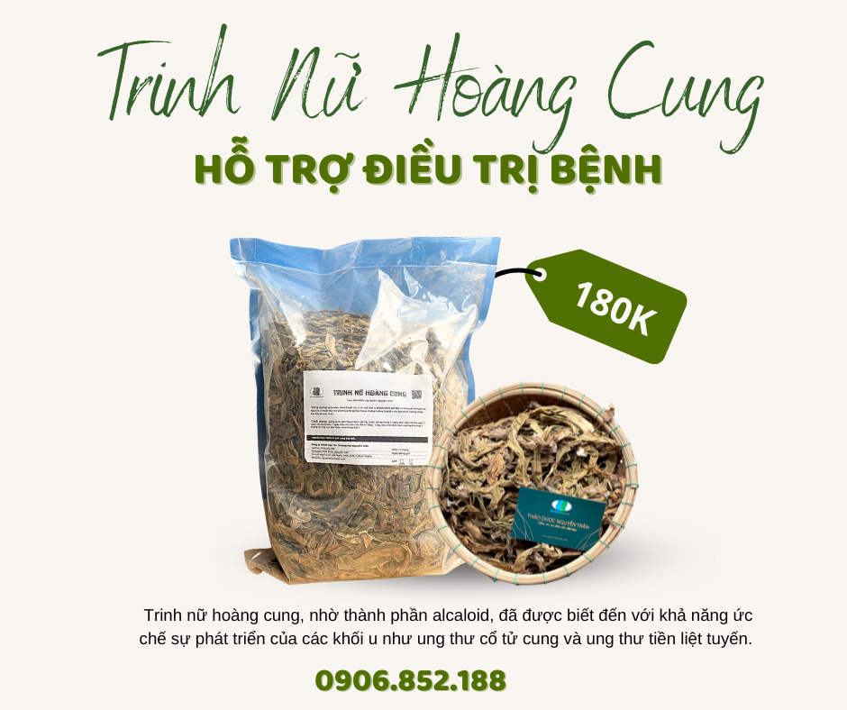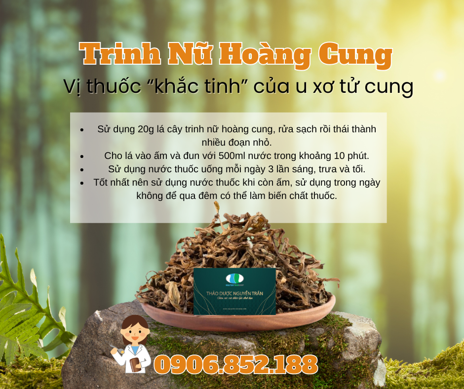 Ngoài các phương pháp điều trị bằng thuốc Tây y và phẫu thuật cắt u xơ, thảo dược Đông y cũng đã được chứng minh hiệu quả trong việc điều trị u xơ tử cung. Trong số đó, trinh nữ hoàng cung là một trong những cây thuốc quan trọng. Trinh nữ hoàng cung có các hoạt chất có tác dụng làm teo và ngăn sự phát triển của u xơ, đồng thời tăng sinh tế bào và giúp phục hồi niêm mạc tử cung nhanh chóng.